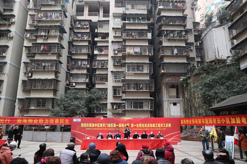 12月23日下午,渝中区朝天门第一高楼小区都市庭园6单元首台民生试点加装电梯工程开工庆典隆重举行。由迈高电梯承建的电梯加装工程正式破土动工,计划将于明年中旬交付投入使用。
