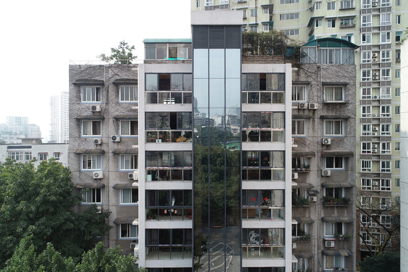 棉花街6号都市庭园建成于2000年,有着山城重庆独特的“3D”特色,该小区共10个单元,每单元共16层,为重庆朝天门片区目前层数最多、楼层最高的老旧小区,电梯加装高度超过51米。