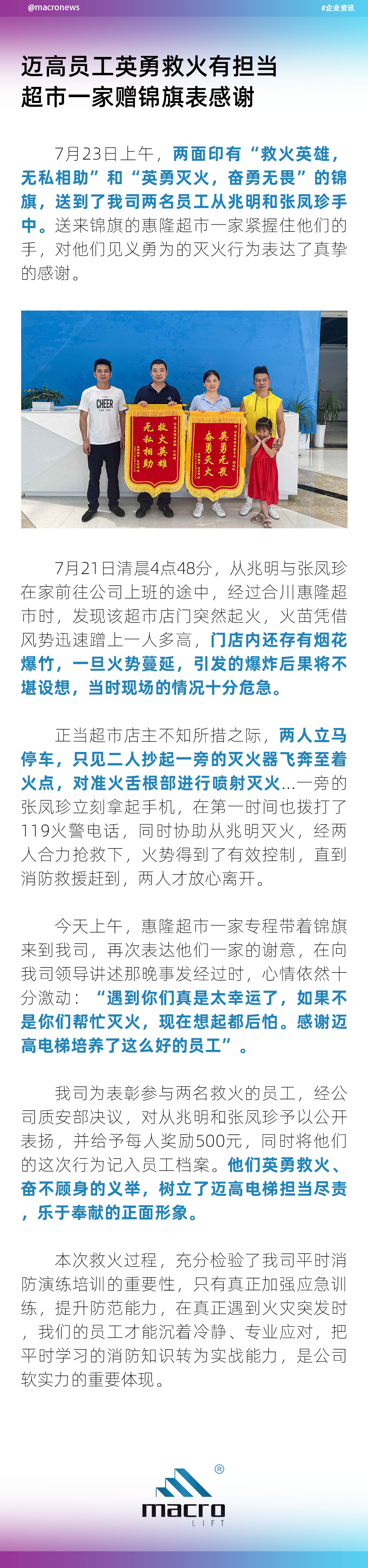 员工新闻|迈高员工英勇救火有担当,超市一家赠锦旗表感谢